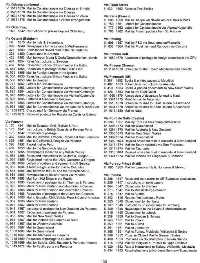 This work is intended to enable collectors to determine by what ship(s) a letters travelled and how to interpret the postage rates on the cover. Sixty pages are devoted to a study of the rates, the outgoing UK rates and those back to the UK, not always synonymous, much of which is hitherto unpublished. A short chapter follows on ship letters, then a review of the packet system from 1844-1880, after which chapters go into detail on the contracts, information to the public, routes, and detailed sailings data for all the packets that carried the mails to and from the colonies, consisting of: